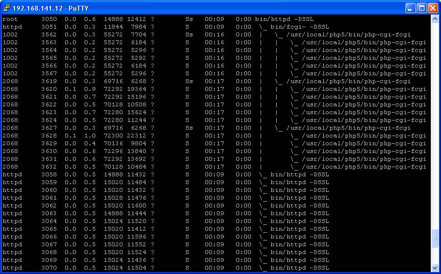 Ein “reifer” PHP-Prozess (mit Typo3 und einigen Extensions) kann dabei durchaus mal 40 MB groß werden - in dem Screenshot sieht man z.B. schon eine Instanz mit 22 MB.